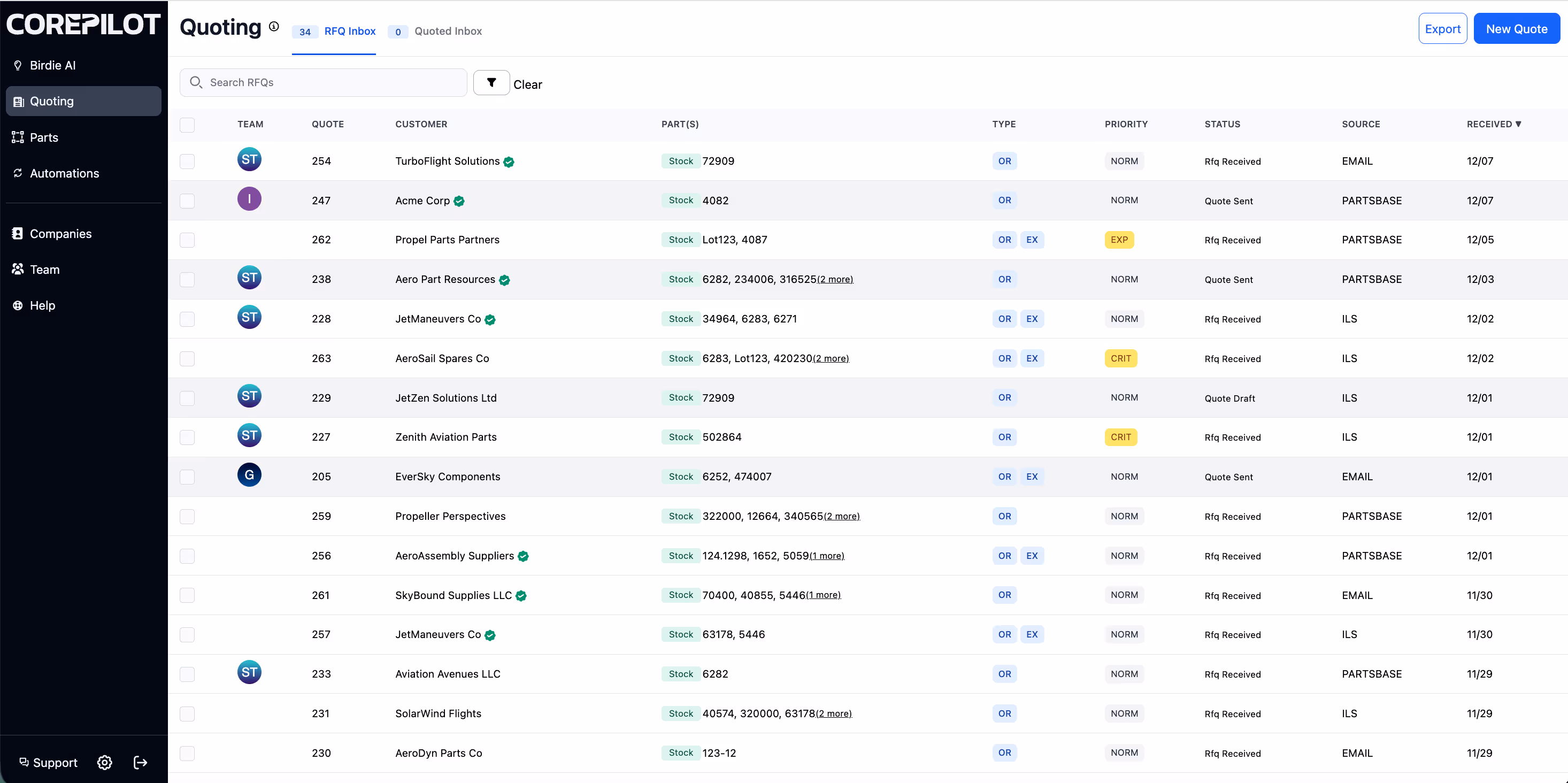 At CorePilot, our mission is to accelerate the aviation supply chain by simplifying and automating the workflows of the aviation aftermarket.
